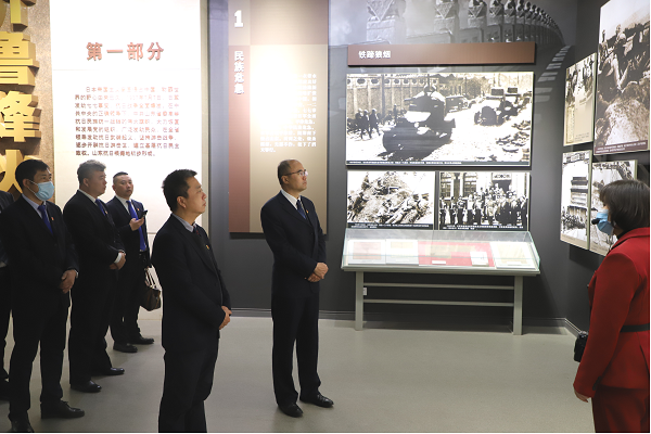 在孟良崮革命紀(jì)念館內(nèi),講解員通過一段段史實故事帶領(lǐng)全員重溫華東野戰(zhàn)軍浴血奮戰(zhàn)的崢嶸歲月。全體人員切實感受到戰(zhàn)爭時期無數(shù)仁人志士和老革命家胸懷理想、為國捐軀的革命情懷,更加堅定了心向黨、行為黨、忠于黨的決心。