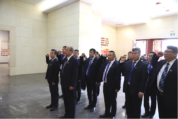 在八路軍115師司令部舊址,五峰山公司黨員干部深受沂蒙精神的感召,高舉拳頭重溫入黨誓詞,齊聲宣誓中傳遞著黨員踐行使命擔(dān)當(dāng)、立足崗位奉獻的如磐初心。