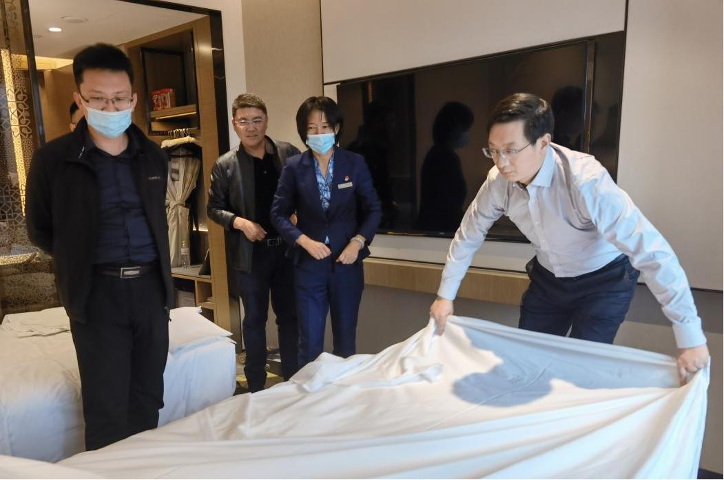 二支部在泉城大酒店參觀酒店實施5S精細(xì)化管理的工作場景,詳細(xì)了解廚房、客房、設(shè)備間、員工餐廳等不同崗位的工作流程,經(jīng)過簡短的崗前培訓(xùn),支部成員分別到客房、餐廳參加打掃客房、餐具擺臺等服務(wù)項目。