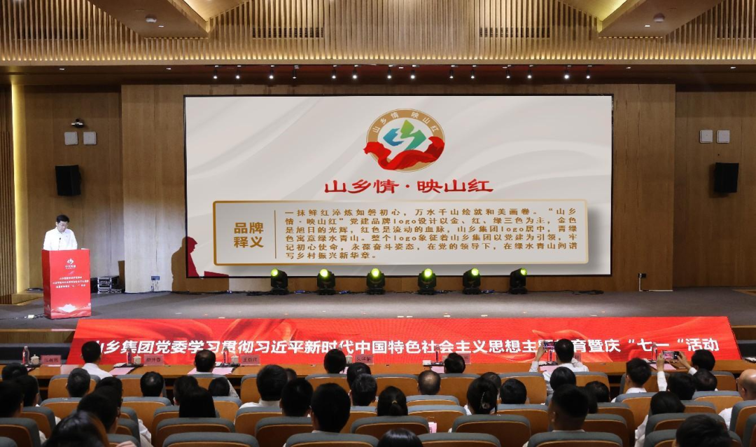 會(huì)上,與會(huì)領(lǐng)導(dǎo)共同上臺(tái)發(fā)布山鄉(xiāng)集團(tuán)“山鄉(xiāng)情·映山紅”黨建品牌。