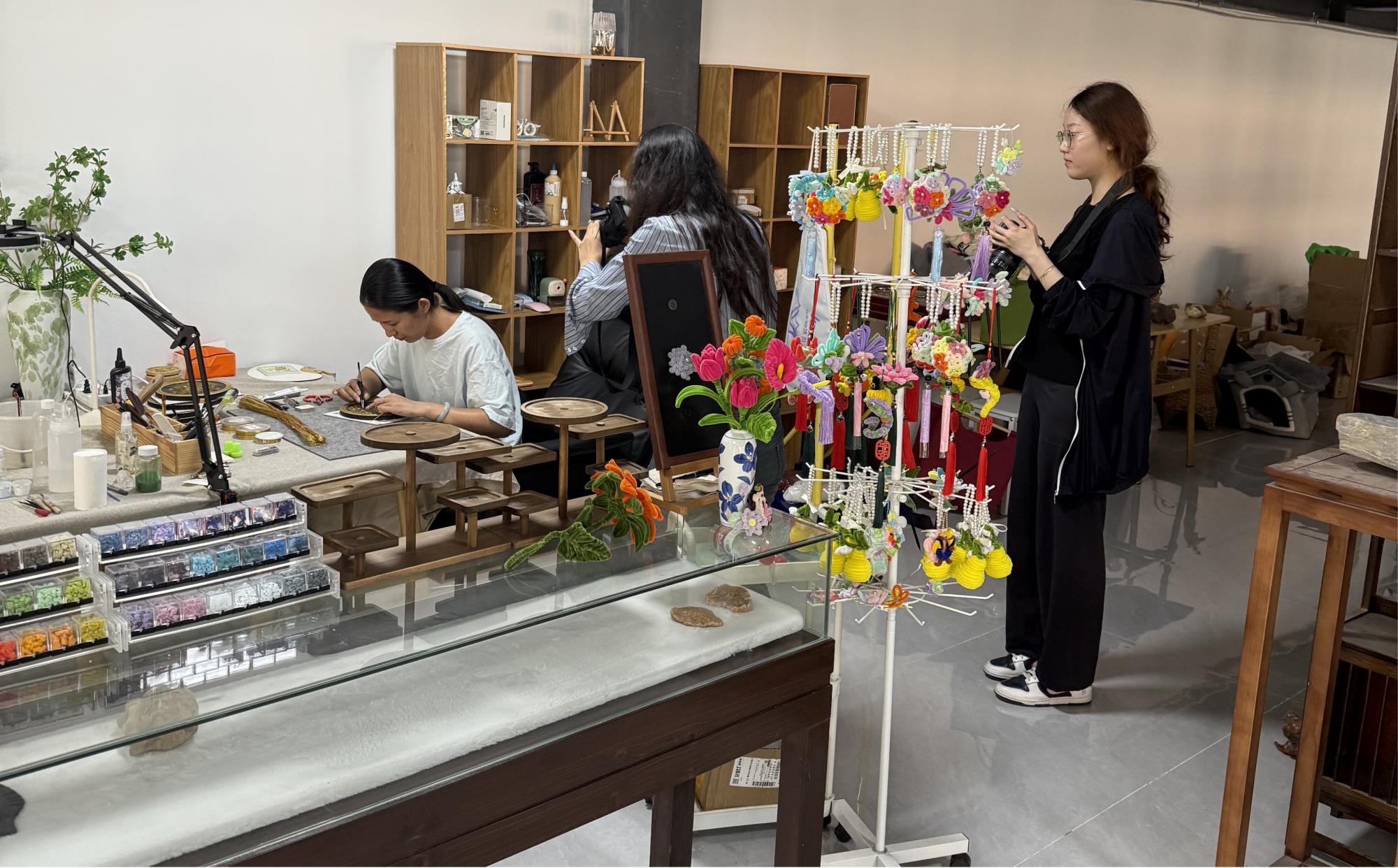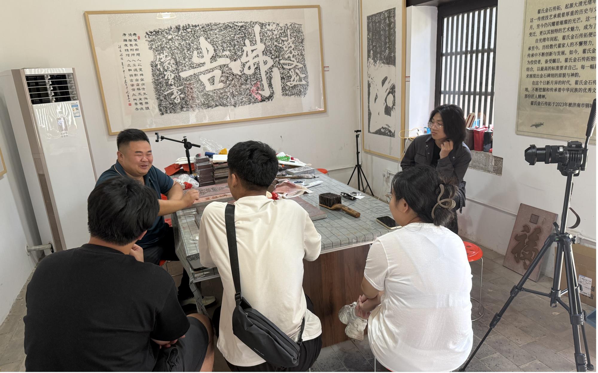 實踐期間,學(xué)生們以項目小組制的形式,圍繞山鄉(xiāng)花雨瀾山農(nóng)文旅融合示范基地展開全面拍攝,深入了解基地內(nèi)休閑農(nóng)業(yè)與文化旅游融合發(fā)展的創(chuàng)新模式;實踐團隊走進瀾頭村,對當?shù)仄z琺瑯工藝、鐵匠工藝和拓印工藝三位非物質(zhì)文化遺產(chǎn)傳承人進行深度跟拍,挖掘他們響應(yīng)家鄉(xiāng)號召、返鄉(xiāng)助力文旅產(chǎn)業(yè)發(fā)展的心路歷程;還登上花雨山,對長期守護青山、助力生態(tài)建設(shè)的守山人進行了多日跟蹤拍攝。
