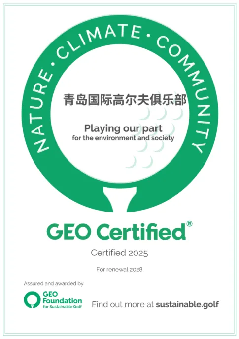 展望未來,青島高爾夫公司將以GEO認證為新起點,持續(xù)深化綠色運營,打造生態(tài)文明型球場典范,探索可持續(xù)的高爾夫發(fā)展路徑,為國家“雙碳”目標(biāo)貢獻企業(yè)力量。