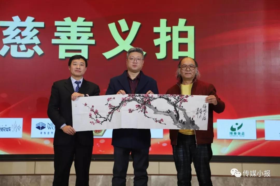 魯商傳媒集團黨委委員、副總經(jīng)理,魯網(wǎng)總經(jīng)理、總編輯王法爭(左一 )在義拍現(xiàn)場