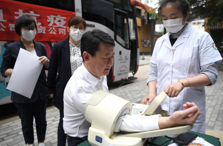 5月14日9點(diǎn),省血液中心的愛心獻(xiàn)血車駛進(jìn)山師東路4號(hào)院內(nèi)。為避免人員聚集,預(yù)防獻(xiàn)血過程中可能出現(xiàn)的交叉感染,前來獻(xiàn)血的黨員干部職工在醫(yī)務(wù)人員的引導(dǎo)下,佩戴口罩、填表登記、測(cè)溫測(cè)壓、檢查血型、抽取血液,現(xiàn)場(chǎng)秩序井然、有條不紊。