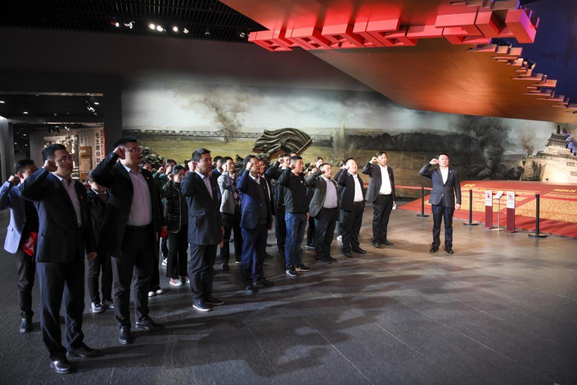 在濟南戰(zhàn)役紀念館,由支部委員曲端正領(lǐng)誓,鄉(xiāng)發(fā)展黨員干部職工重溫入黨誓詞,不忘入黨初心。隨后,大家在講解員的帶領(lǐng)下參觀了陳列展廳。一張張老照片、一個個老物件,重現(xiàn)了當年濟南攻堅戰(zhàn)激烈壯觀的場面。革命先輩們?nèi)f眾一心、團結(jié)奮戰(zhàn)、同仇敵愾、勇于攻堅、嚴格紀律的精神深深觸動著在場的每一個人。在觀看全景畫《濟南戰(zhàn)役》時,大家仿佛又回到了那段崢嶸歲月,為曾經(jīng)的那場悲壯戰(zhàn)斗所震撼。最后,全體人員瞻仰革命烈士紀念塔,緬懷先烈事跡,激起深厚的愛國情懷。