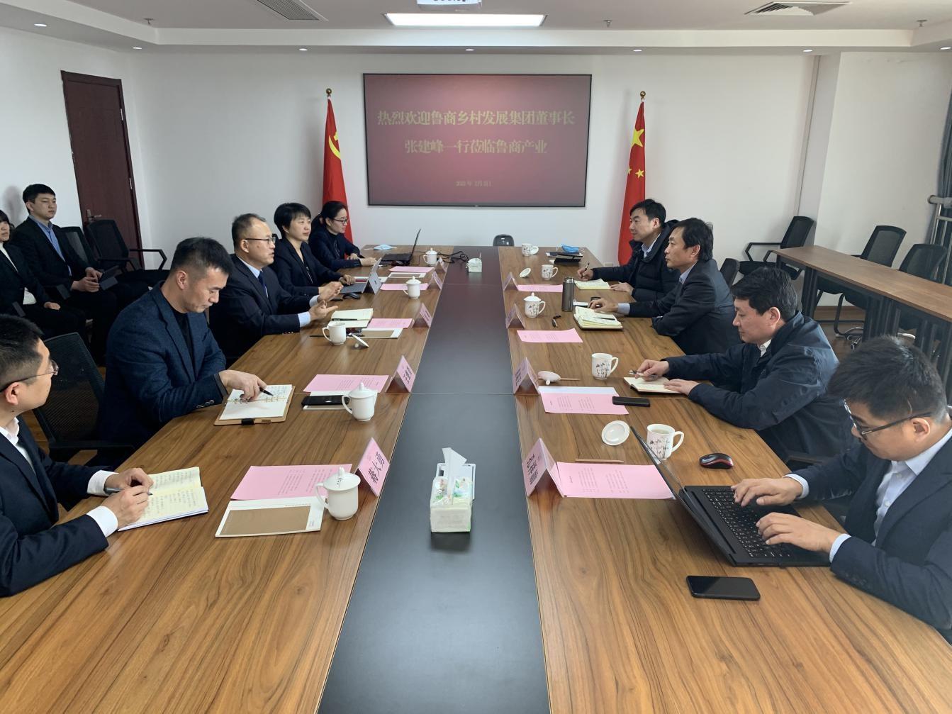 2月2日上午,魯商鄉(xiāng)村發(fā)展集團(tuán)(簡稱鄉(xiāng)發(fā)展)董事長張建峰帶隊(duì)到山東省魯商集團(tuán)產(chǎn)業(yè)投資有限公司(簡稱魯商產(chǎn)業(yè))開展交流座談。魯商產(chǎn)業(yè)董事長葛健、副總經(jīng)理劉穎,營發(fā)中心、業(yè)務(wù)支持部、發(fā)展中心有關(guān)負(fù)責(zé)人員,鄉(xiāng)發(fā)展副總經(jīng)理曲端正,外部董事、財(cái)務(wù)總監(jiān)王蘇洲,魯商陳角峪(新泰)鄉(xiāng)村發(fā)展有限公司負(fù)責(zé)人員參加會議。