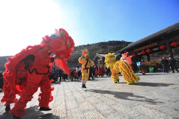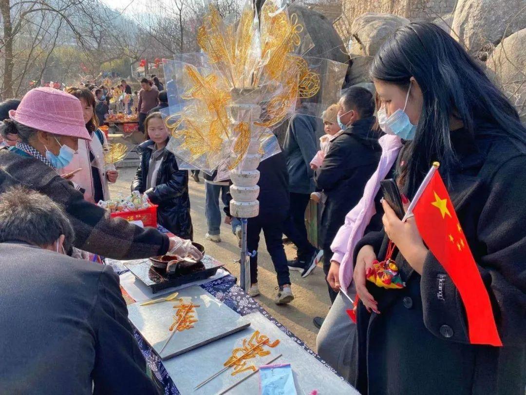 大年初一至初五,天蒙山景區(qū)每天進行熱鬧的舞龍舞獅、踩高蹺、扭秧歌、山羊馬戲等民俗巡游表演,游客和沂蒙老鄉(xiāng)現(xiàn)場互動,攤煎餅、編柳編、剪紙,玩的不亦樂乎。