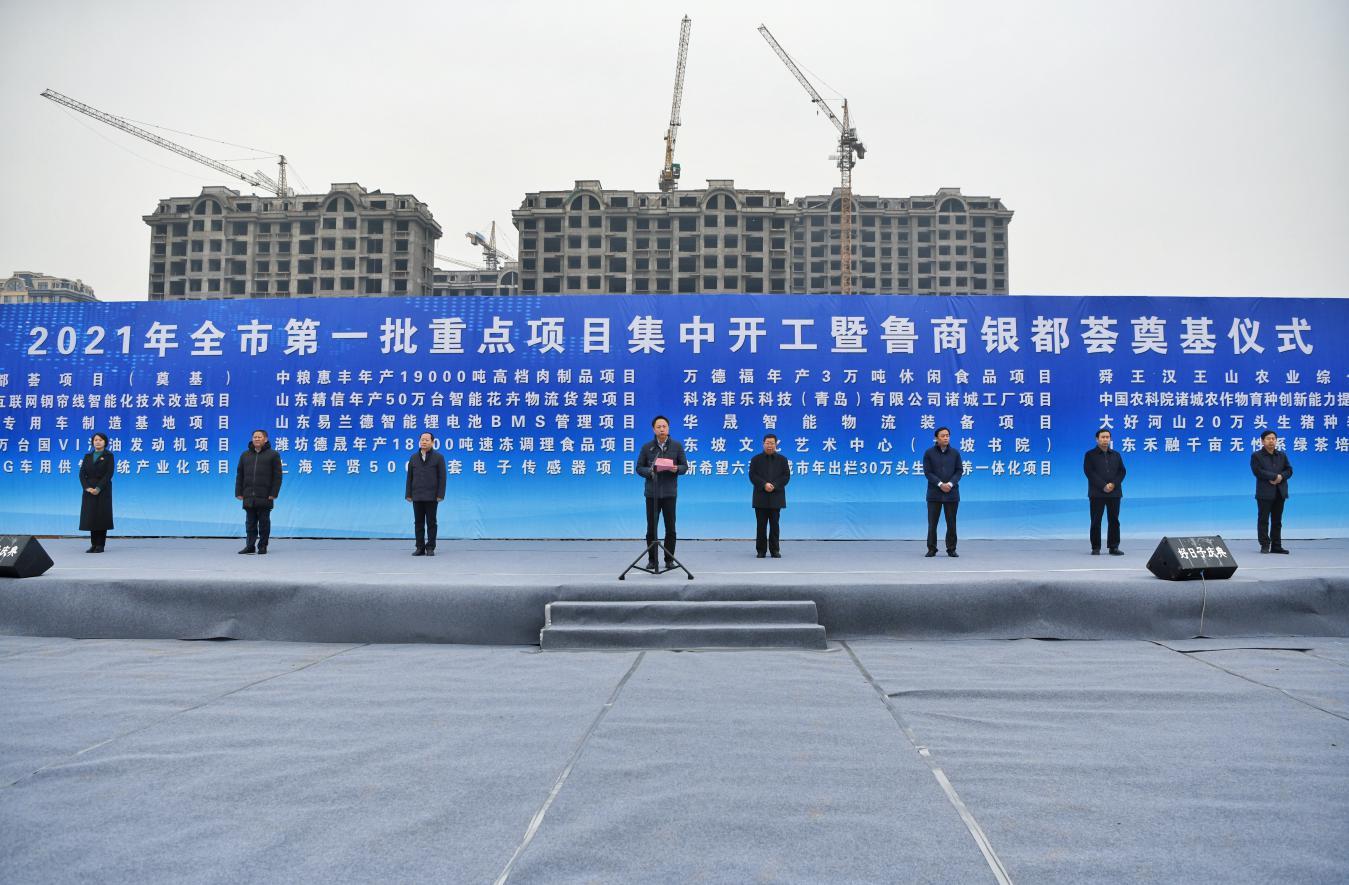 2月26日上午,諸城市第一批重點項目集中開工暨魯商銀都薈項目奠基儀式隆重舉行。諸城市委書記桑福嶺,市委副書記、市長王浩,市委副書記李慶華等市領導,山東省國欣文化旅游發(fā)展集團有限公司黨委副書記、總經理丁藝,山東魯商城鄉(xiāng)融合發(fā)展有限公司(簡稱城鄉(xiāng)融合公司)董事長、魯商鄉(xiāng)村發(fā)展集團(簡稱鄉(xiāng)發(fā)展集團)董事長張建峰,總經理曲勇等參加奠基儀式。