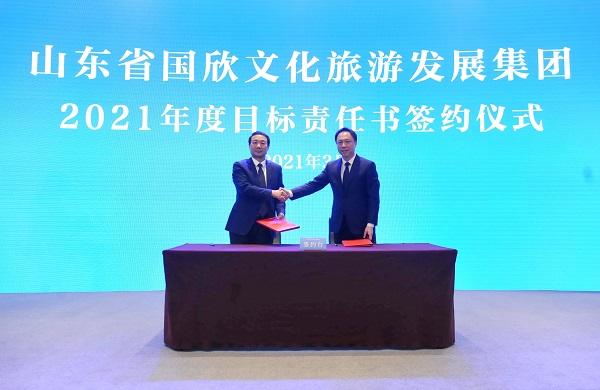 高洪雷首先對2020年集團(tuán)各單位、各部門取得的成績給予充分肯定,主要表現(xiàn)在六個方面。一是順利完成企業(yè)重組整合,在國資委主導(dǎo)下,成功組建山東省國欣文化旅游發(fā)展集團(tuán),實現(xiàn)了省領(lǐng)導(dǎo)提出的“輕裝前進(jìn)”的整合目標(biāo)。二是經(jīng)濟(jì)運行好于預(yù)期,面對疫情造成的嚴(yán)重影響,全體干部員工不等不靠、自強(qiáng)自立,各項指標(biāo)在同行業(yè)中率先回暖轉(zhuǎn)正。三是成功推出一批精品項目,如九女峰項目成為鄉(xiāng)村振興齊魯樣板的典型代表,紅葉柿巖景區(qū)自去年營業(yè)以來在淄博地區(qū)實現(xiàn)人次、營收“雙第一”,“明湖100”項目樹立山東美育教育新標(biāo)桿,“一部手機(jī)游山東”成為北斗系統(tǒng)產(chǎn)業(yè)化應(yīng)用山東首選項目。四是充分彰顯國企擔(dān)當(dāng),積極服務(wù)“六穩(wěn)”“六?!?,山東文旅酒店集團(tuán)提供酒店供政府及醫(yī)務(wù)工作者使用。山東文旅景區(qū)集團(tuán)組織農(nóng)夫山貨大集、“后備箱工程”等公益舉措助農(nóng)增收。鄉(xiāng)發(fā)展集團(tuán)九女峰項目讓上千名村民實現(xiàn)家門口就業(yè)。山東文旅投資集團(tuán)開展多次“送戲下鄉(xiāng)”惠民演出。省旅游設(shè)計院義務(wù)承擔(dān)新疆喀什旅游扶貧規(guī)劃工作。山東文旅傳媒集團(tuán)直播帶貨滯銷農(nóng)產(chǎn)品,“速豹新聞網(wǎng)”《泰山礦泉水5元一瓶》報道有力宣傳了山東旅游好形象。五是“雙招雙引”取得突破,山東文旅酒店集團(tuán)、山東文旅景區(qū)集團(tuán)、鄉(xiāng)發(fā)展集團(tuán)、山東文旅傳媒集團(tuán)雙招雙引取得優(yōu)秀成果。六是黨的建設(shè)扎實推進(jìn),建立“第一議題”制度,開展“解放思想大討論”活動,扎實推進(jìn)黨風(fēng)廉政建設(shè)。