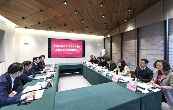 張建峰表示,實(shí)施鄉(xiāng)村振興戰(zhàn)略,是黨的十九大作出的重大決策部署;打造鄉(xiāng)村振興齊魯樣板,是習(xí)近平總書記對山東的殷切期望。鄉(xiāng)發(fā)展集團(tuán)深入踐行“667”鄉(xiāng)村振興發(fā)展模式,積極投身我省鄉(xiāng)村振興齊魯樣板建設(shè),先后成立了山東省鄉(xiāng)村振興齊魯樣板研究院,打造鄉(xiāng)村振興智力引擎;成立了魯商鄉(xiāng)村振興產(chǎn)業(yè)基金,創(chuàng)新投融資模式;聘任了中國工程院院士、著名能源與環(huán)境專家陳勇,合作建立了鄉(xiāng)村振興院士工作站,開展有機(jī)固體廢物能源化與資源化利用等技術(shù)的研究利用,有關(guān)科技成果已在九女峰成功轉(zhuǎn)化。山農(nóng)大資環(huán)學(xué)院教學(xué)資源雄厚,在農(nóng)業(yè)資源管理與利用、資源環(huán)境監(jiān)測與分析、土地資產(chǎn)經(jīng)營與管理等領(lǐng)域具有較高的理論水平。此次簽約,雙方將在構(gòu)建人才共享機(jī)制、搭建教研實(shí)訓(xùn)+社會(huì)實(shí)踐雙基地、打造橫向課題教研室以及“產(chǎn)、教、研、培”技術(shù)服務(wù)平臺(tái)方面進(jìn)行合作,共同開創(chuàng)鄉(xiāng)村振興新局面。