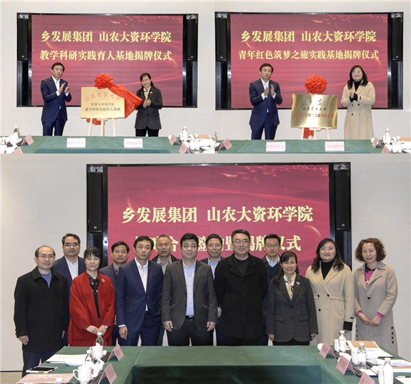 3月12日,魯商鄉(xiāng)村發(fā)展集團(tuán)有限公司(簡稱“鄉(xiāng)發(fā)展集團(tuán)”)與山東農(nóng)業(yè)大學(xué)資源與環(huán)境學(xué)院(簡稱“山農(nóng)大資環(huán)學(xué)院”)在泰山·九女峰“云合景從”會(huì)議室召開戰(zhàn)略合作簽約暨揭牌儀式。山農(nóng)大資環(huán)學(xué)院黨委書記馮國營,院長、教授諸葛玉平,山東農(nóng)業(yè)大學(xué)教務(wù)處副處長接玉玲,學(xué)工處副處長姜芳,鄉(xiāng)發(fā)展集團(tuán)董事長張建峰等參加活動(dòng)。鄉(xiāng)發(fā)展集團(tuán)副總經(jīng)理馬光金主持簽約暨揭牌儀式。