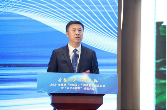 3月16日上午,“齊魯門戶 醫(yī)養(yǎng)之都”2021年槐蔭“雙招雙引”高質(zhì)量發(fā)展推介會暨“京滬會客廳”推進大會在濟南市槐蔭區(qū)京滬會客廳舉行。山東省國欣文化旅游發(fā)展集團有限公司(簡稱“國欣文旅”)黨委副書記、總經(jīng)理丁藝出席活動并致辭。大會由槐蔭區(qū)委副書記、區(qū)政府黨組書記孫常建主持并介紹領(lǐng)導(dǎo)出席情況?;笔a區(qū)委書記李國強致辭。