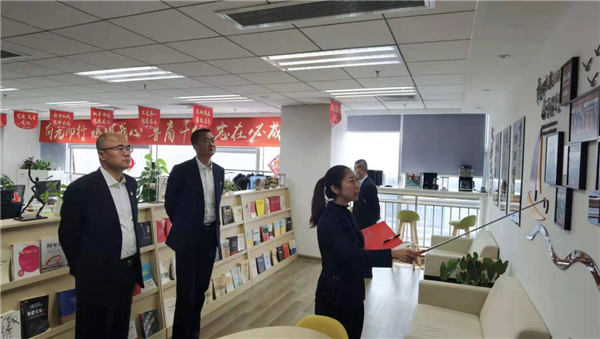 在魯商發(fā)展?jié)铣鞘泄军h總支書記任剛的引領(lǐng)下,劉偉一行參觀了黨建文化長(zhǎng)廊、廉潔文化室、悅讀港灣等處。在隨后的座談會(huì)上,雙方探討了資源開發(fā)、產(chǎn)業(yè)運(yùn)作、業(yè)務(wù)協(xié)同、資源共享等方面的合作方式。