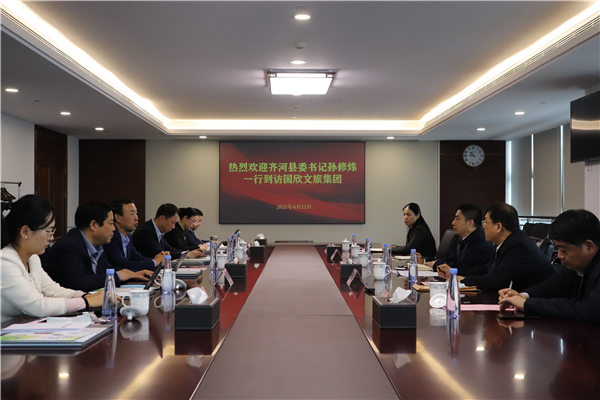 4月22日上午,魯商集團(tuán)黨委書記、董事長(zhǎng)兼山東省國(guó)欣文化旅游發(fā)展集團(tuán)有限公司(簡(jiǎn)稱“國(guó)欣文旅”)黨委書記、董事長(zhǎng)高洪雷與到訪的德州市齊河縣委書記孫修煒一行座談交流。國(guó)欣文旅黨委副書記、總經(jīng)理丁藝參加。