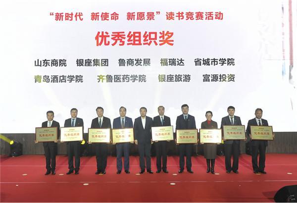 姬德君在致辭中表示,今年是中國共產黨成立100周年,在全黨開展黨史學習教育意義重大。魯商集團、國欣文旅具有濃厚的文化基因和學習氛圍,特別是此次將企業(yè)傳統(tǒng)的讀書競賽活動和黨史學習教育結合起來,是對黨中央決策部署和省委工作要求的積極響應。高洪雷書記是著名的歷史紀實文學作家,其著作充滿了對歷史和現(xiàn)實的思考,立意高遠,文學素養(yǎng)強,閃耀著人性的光輝。相信此次讀書競賽活動一定會實現(xiàn)文學性與現(xiàn)實性,社會效益與經濟效益的有機融合,對提高全體職工的人文素質、創(chuàng)建書香企業(yè)必將起到非常重要的促進作用。在啟動儀式上, 2020“新時代 新使命 新愿景”讀書競賽活動頒獎典禮也同步舉行。