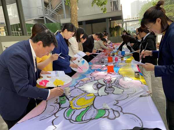 活動現(xiàn)場,大家在專業(yè)老師的指導(dǎo)下,用五彩斑斕的畫筆勾勒藍(lán)天白云和壯美景觀,抒寫對黨和國家的祝福,對鄉(xiāng)村振興事業(yè)蒸蒸日上的期盼。在大家的精心繪制下,一幅絢麗多彩、蓬勃向上的“江山如此多嬌”畫卷呈現(xiàn)在大家眼前,吸引園區(qū)參觀人員駐足欣賞,成為了園區(qū)一道亮麗的風(fēng)景。