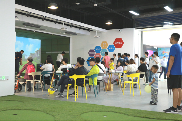 五峰山公司自2020年底起著手?jǐn)U大濟(jì)南東部高爾夫市場布局,面向濟(jì)南市建立高爾夫青少年培訓(xùn)旗艦店,同時(shí)進(jìn)行崮云湖高爾夫球場業(yè)態(tài)展示及模擬器產(chǎn)品展銷。經(jīng)過近半年的緊張籌措,山東文旅崮云湖高爾夫體驗(yàn)中心最終落戶濟(jì)南融創(chuàng)文旅城。為保障首日試運(yùn)營順利,五峰山公司提前對服務(wù)人員進(jìn)行了為期半月的崗前特訓(xùn),模擬接待指引、體驗(yàn)教學(xué)等基本工作。伴隨濟(jì)南融創(chuàng)文旅城開業(yè),游客紛紛涌入各大主題館內(nèi)參觀消費(fèi),作為融創(chuàng)茂體育世界館內(nèi)最具特色的體驗(yàn)中心之一,山東文旅崮云湖高爾夫體驗(yàn)中心迅速吸引了大量游客的視線,其中不乏青少年體驗(yàn)者。體驗(yàn)中心設(shè)置的9臺高爾夫模擬器最大限度還原了球場實(shí)景,輔以自然音效,為游客帶來了最真實(shí)、優(yōu)質(zhì)的體驗(yàn)感。