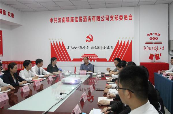 授課前,王振江對濟南銀座佳悅酒店黨支部創(chuàng)建過硬黨支部情況進行指導,參觀了黨支部“黨群之家”文化長廊和黨員活動室,查看了支部黨建資料,帶領(lǐng)大家重溫了入黨誓詞,聽取了黨支部工作情況匯報,并與部分黨員代表進行座談交流,仔細了解支部黨建和黨員工作生活中存在的困難、問題,有針對性地提出了意見和建議。