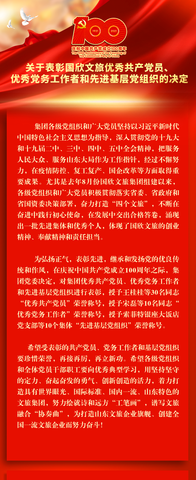 關(guān)于表彰國(guó)欣文旅優(yōu)秀共產(chǎn)黨員、優(yōu)秀黨務(wù)工作者和先進(jìn)基層黨組織的決定