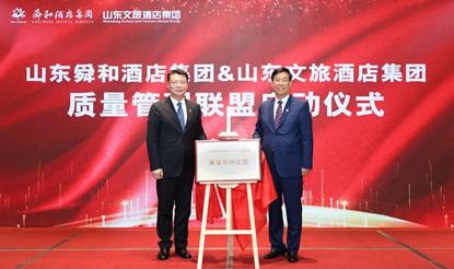會(huì)上,山東舜和酒店集團(tuán)與山東文旅酒店集團(tuán)成立質(zhì)量管理聯(lián)盟,任興本與李浩共同揭牌。