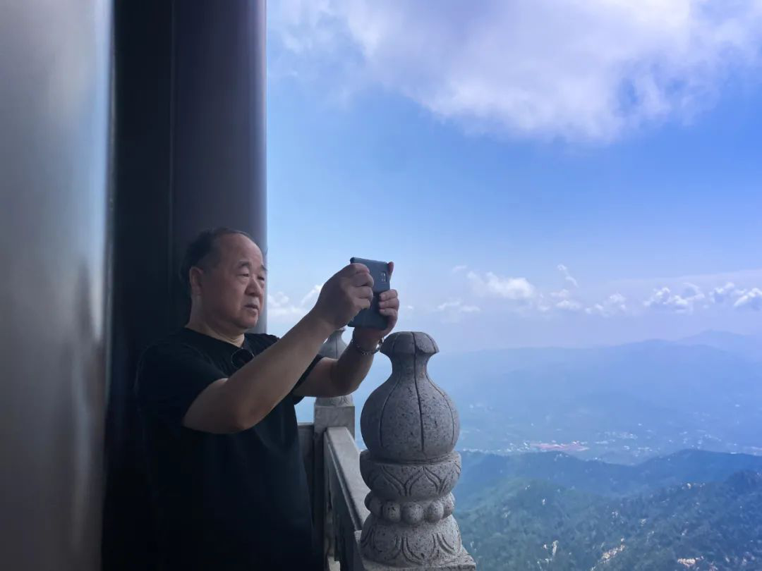 8月6日,諾貝爾文學(xué)獎(jiǎng)得主、著名作家莫言到天蒙山景區(qū)參觀考察,品小調(diào)、游沂蒙、觀山水。