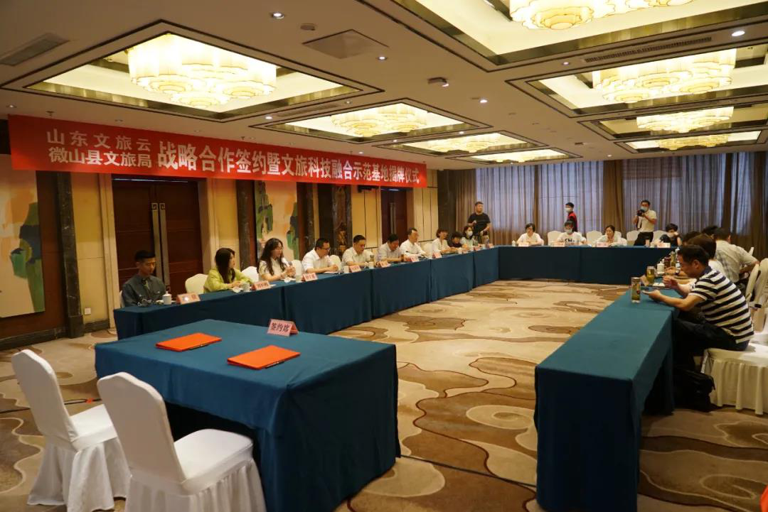 為響應國家“科技+文旅”融合發(fā)展號召,發(fā)揮省級智慧文旅平臺優(yōu)勢,進一步加強對微山湖旅游區(qū)資源的優(yōu)化整合,助力微山湖旅游區(qū)申創(chuàng)國家5A級旅游景區(qū),8月23日,微山縣文化和旅游局與山東文旅云智能科技有限公司(簡稱“文旅云公司”)戰(zhàn)略合作簽約暨文旅科技融合示范基地揭牌儀式在濟寧市微山縣舉行。微山縣政府黨組成員、南陽古鎮(zhèn)旅游管理服務中心主任李丙宏,國欣文旅黨委委員、副總經(jīng)理、山東文旅景區(qū)集團黨委書記、董事長季將參加活動。