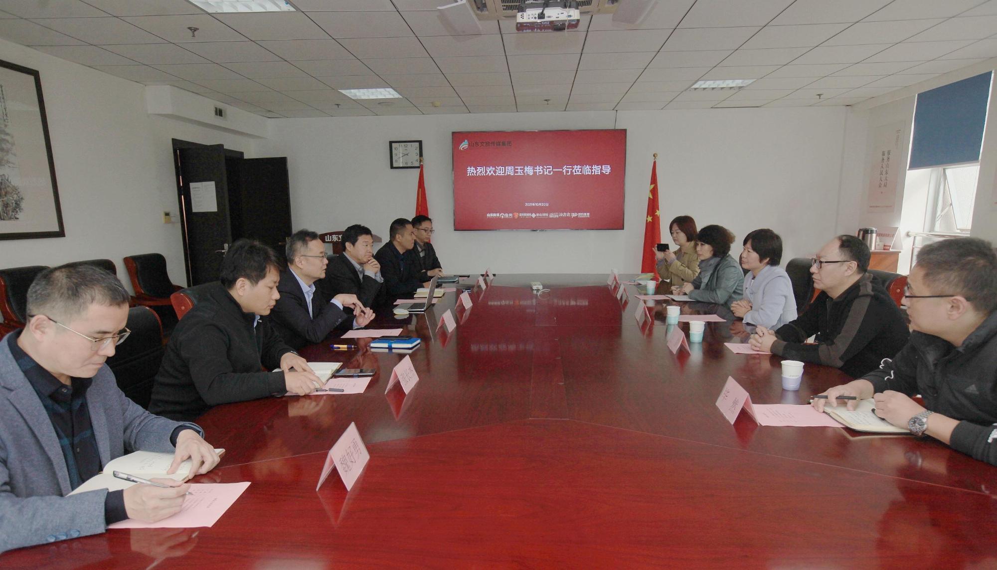 10月20日,山東商院文化創(chuàng)意產(chǎn)業(yè)學(xué)院書記周玉梅一行5人到山東文旅傳媒集團走訪并進行座談交流。山東文旅傳媒集團黨委書記、董事長龐道鋒熱情接待。