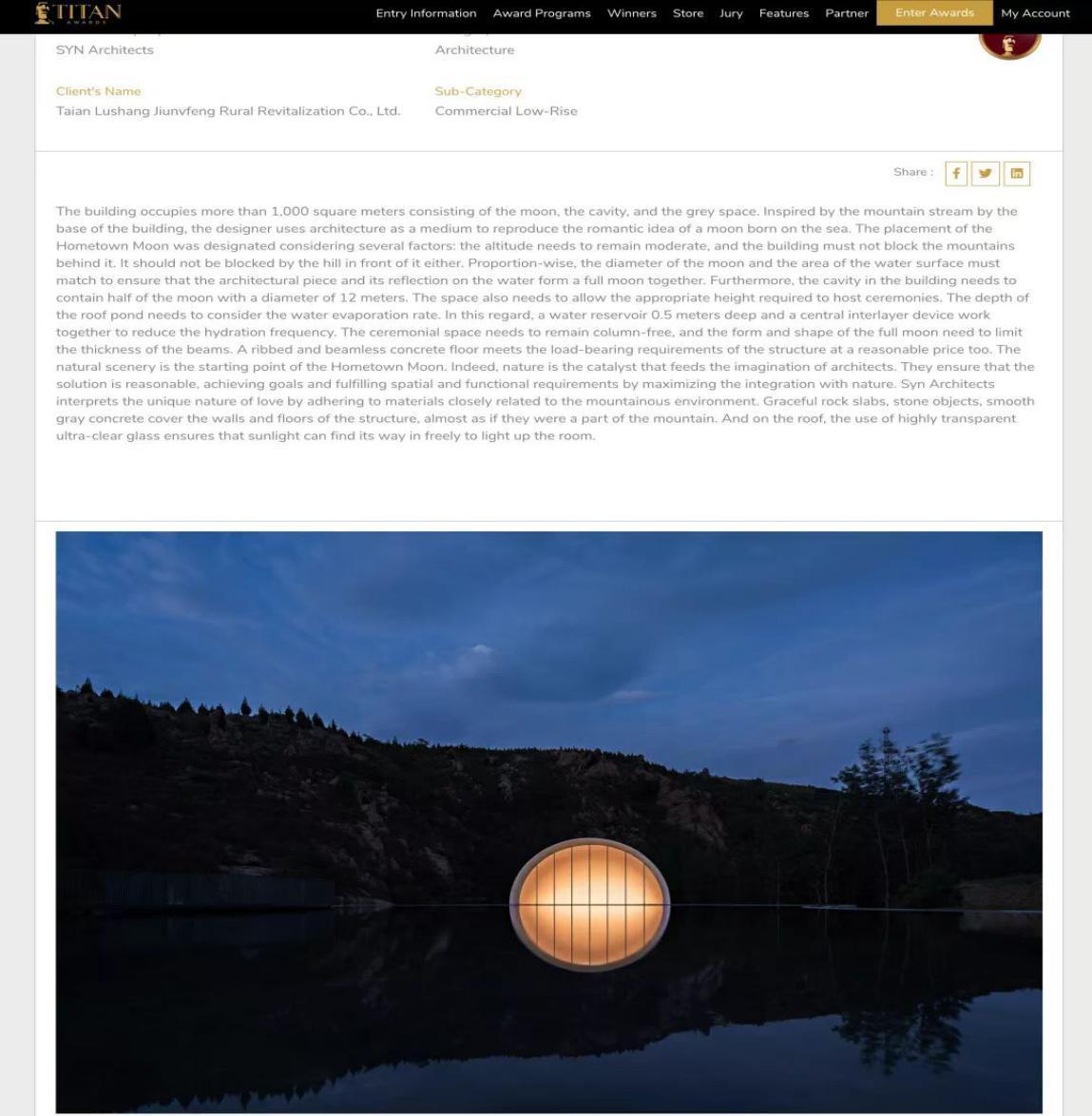 近日,2021美國TITAN Property Awards揭曉獲獎名單,鄉(xiāng)發(fā)展集團(tuán)投資建設(shè)的泰山·九女峰鄉(xiāng)村度假區(qū)“故鄉(xiāng)的月”榮獲金獎,這也是該項(xiàng)目斬獲的首個國際性大獎。