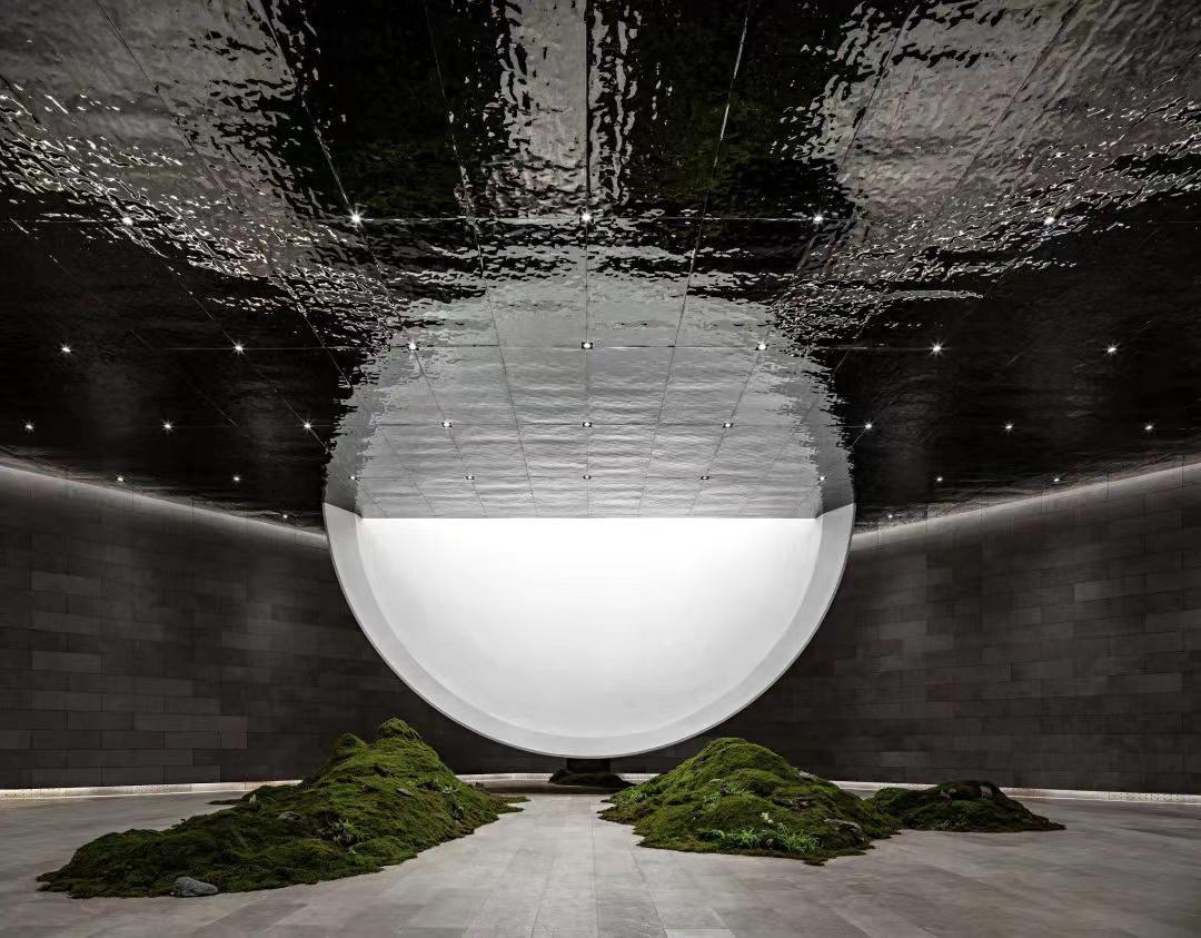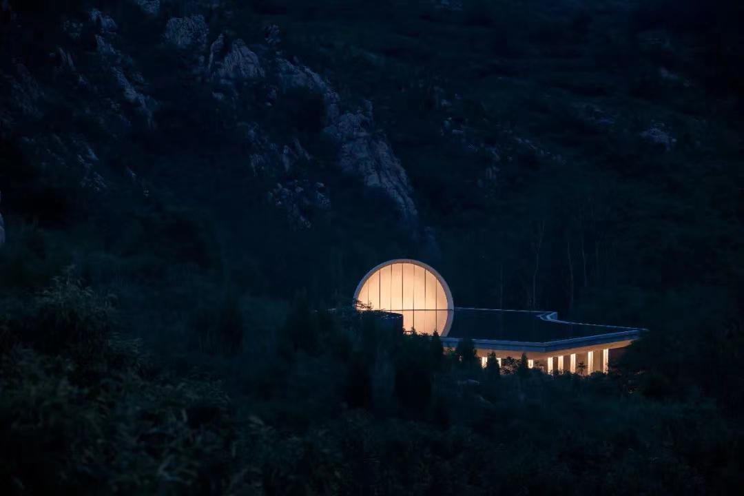“故鄉(xiāng)的月”功能定位禮堂藝術(shù)空間,整體建筑由月亮、腔體、灰空間三大主要部分構(gòu)成,由魯商袈藍(lán)(山東)建筑規(guī)劃設(shè)計(jì)有限公司設(shè)計(jì),出自主創(chuàng)建筑師鄒迎晞之手,受基地前方山澗的啟發(fā),以建筑為媒介,力圖再現(xiàn)“海上生明月”的浪漫。
