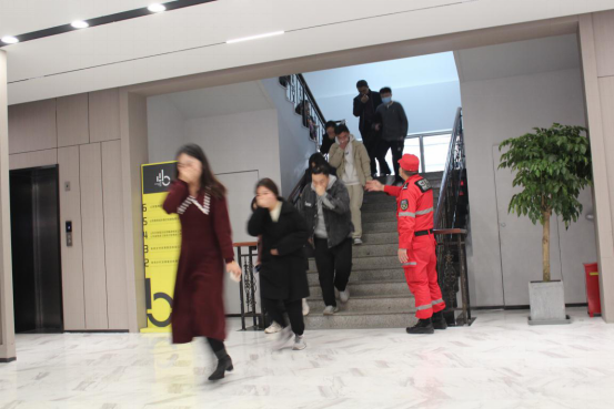 本次演練采取情景模擬和現(xiàn)場演練相結(jié)合的方式。工作人員按響聲光報(bào)警器后,辦公樓內(nèi)各樓層撲救員迅速取出滅火器進(jìn)行撲救,報(bào)警員、疏散員立即組織人員快速有序疏散,同時(shí),安保人員接到報(bào)警后快速到達(dá)著火點(diǎn),打開消火栓進(jìn)行撲救,最終險(xiǎn)情被及時(shí)控制,人員均疏散至室外安全位置。