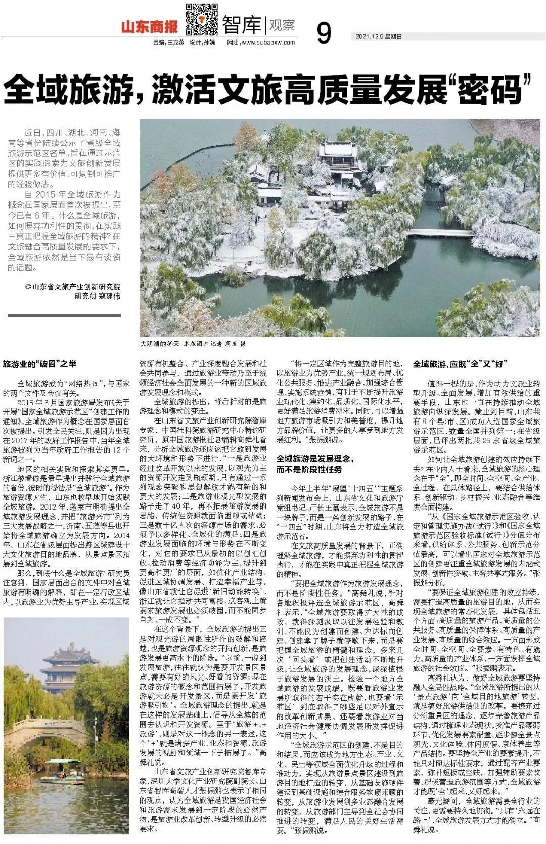 洞察文旅,智慧引領。12月5日,山東省文旅產業(yè)創(chuàng)新研究院在山東商報開設的智庫版正式亮相。