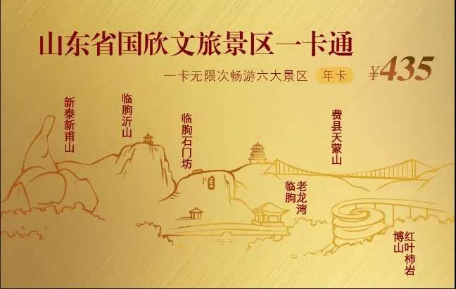 2021年7月,山東文旅景區(qū)集團(tuán)整合旗下費(fèi)縣天蒙山、臨朐沂山、石門(mén)坊、老龍灣、新泰新甫山、博山紅葉柿巖等六家優(yōu)質(zhì)景區(qū)資源,推出了“山東省國(guó)欣文旅景區(qū)”一卡通,原價(jià)435元,惠民價(jià)198元,游客一年內(nèi)可以無(wú)限次進(jìn)入六大景區(qū)。