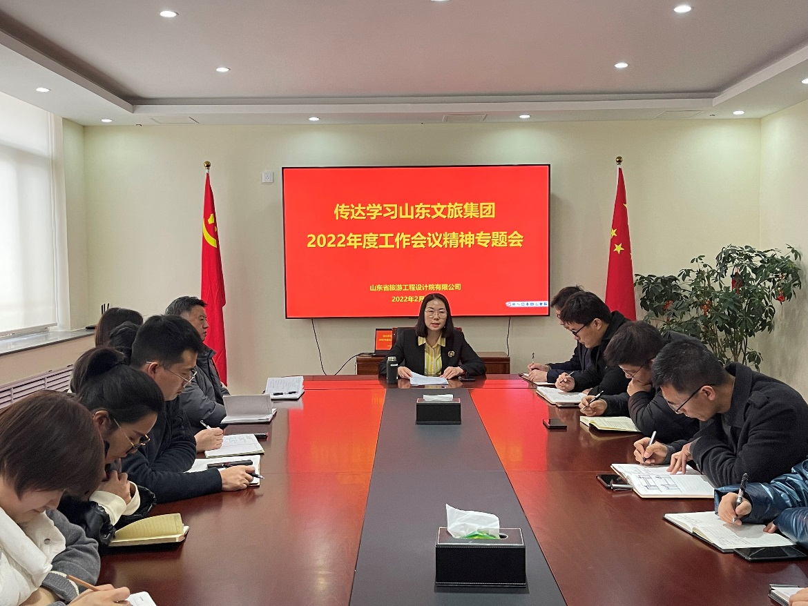 2月18日,山東省旅游工程設(shè)計(jì)院有限公司(簡(jiǎn)稱“省旅游設(shè)計(jì)院”)組織召開專題會(huì)議,對(duì)山東文旅集團(tuán)有限公司(以下簡(jiǎn)稱“集團(tuán)”)黨委工作會(huì)議和年度工作會(huì)議精神進(jìn)行傳達(dá)學(xué)習(xí),安排部署年度黨建和經(jīng)營(yíng)工作。省旅游設(shè)計(jì)院黨支部書記、執(zhí)行董事孫曉靜主持會(huì)議并講話。