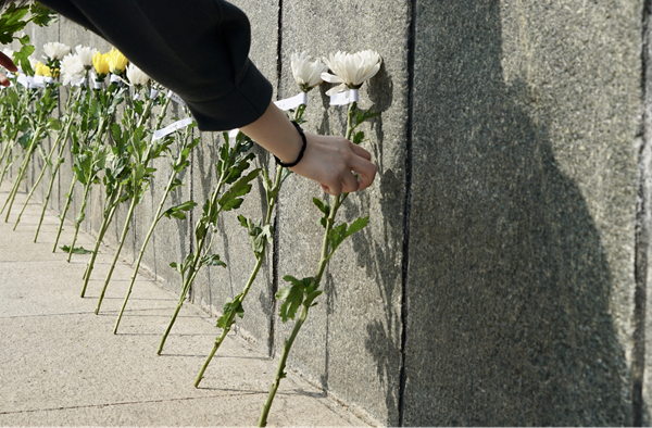 春風(fēng)拂去傷痛,遙寄吾之哀思。4月5日,云游齊魯智慧文旅平臺(tái)工作人員帶著數(shù)百網(wǎng)友的心意,手持鮮花,佩戴口罩,以鞠躬、獻(xiàn)花、擦拭之儀,為英烈獻(xiàn)上春日之花。獻(xiàn)花過程中,不時(shí)有周邊前來追思的群眾主動(dòng)加入獻(xiàn)花隊(duì)伍,讓英烈的精神得以傳承。