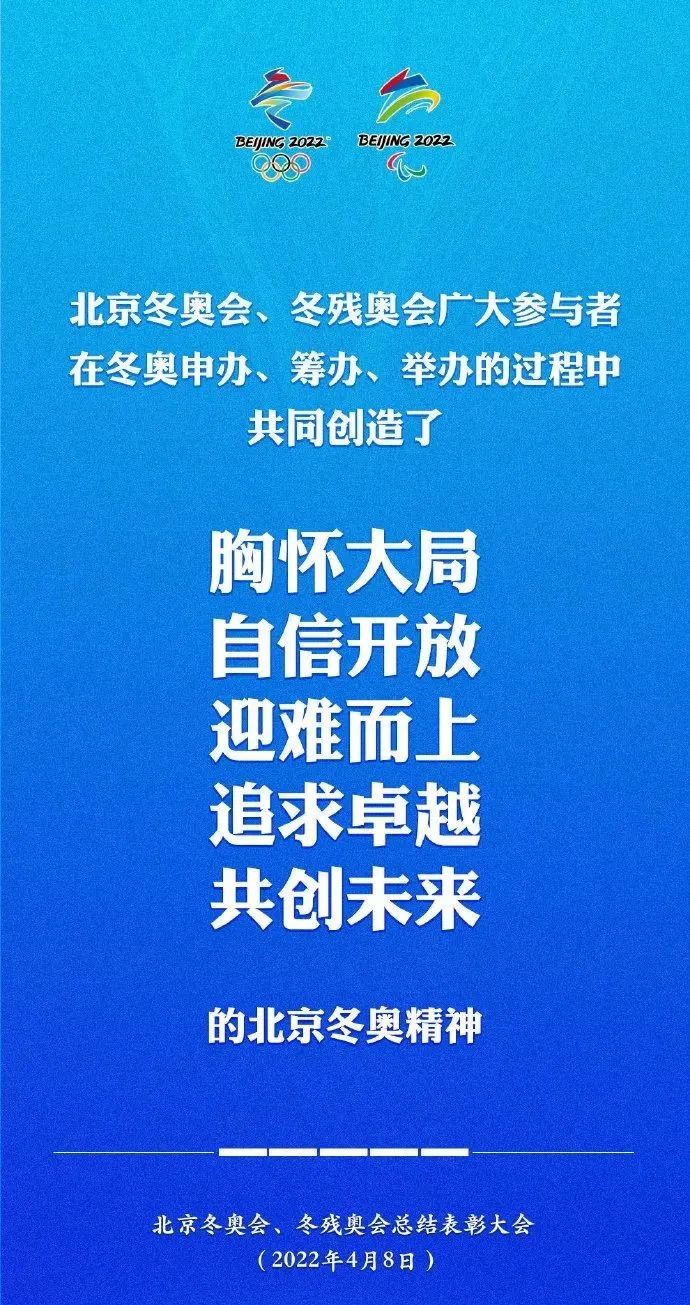 4月8日上午,北京冬奧會(huì)、冬殘奧會(huì)總結(jié)表彰大會(huì)在人民大會(huì)堂隆重舉行。習(xí)近平總書(shū)記在講話中指出,偉大的事業(yè)孕育偉大的精神,偉大的精神推進(jìn)偉大的事業(yè)。北京冬奧會(huì)、冬殘奧會(huì)廣大參與者珍惜偉大時(shí)代賦予的機(jī)遇,在冬奧申辦、籌辦、舉辦的過(guò)程中,共同創(chuàng)造了胸懷大局、自信開(kāi)放、迎難而上、追求卓越、共創(chuàng)未來(lái)的北京冬奧精神。