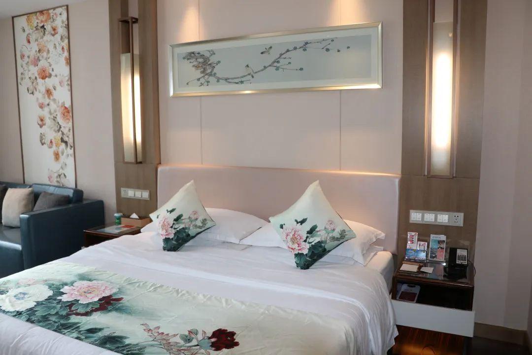 酒店擁有豪華客房、雅致客房、空氣清新房、牡丹主題房等14種房型,其中入住特色牡丹主題房,攜花入夢(mèng),許您一枕香甜。