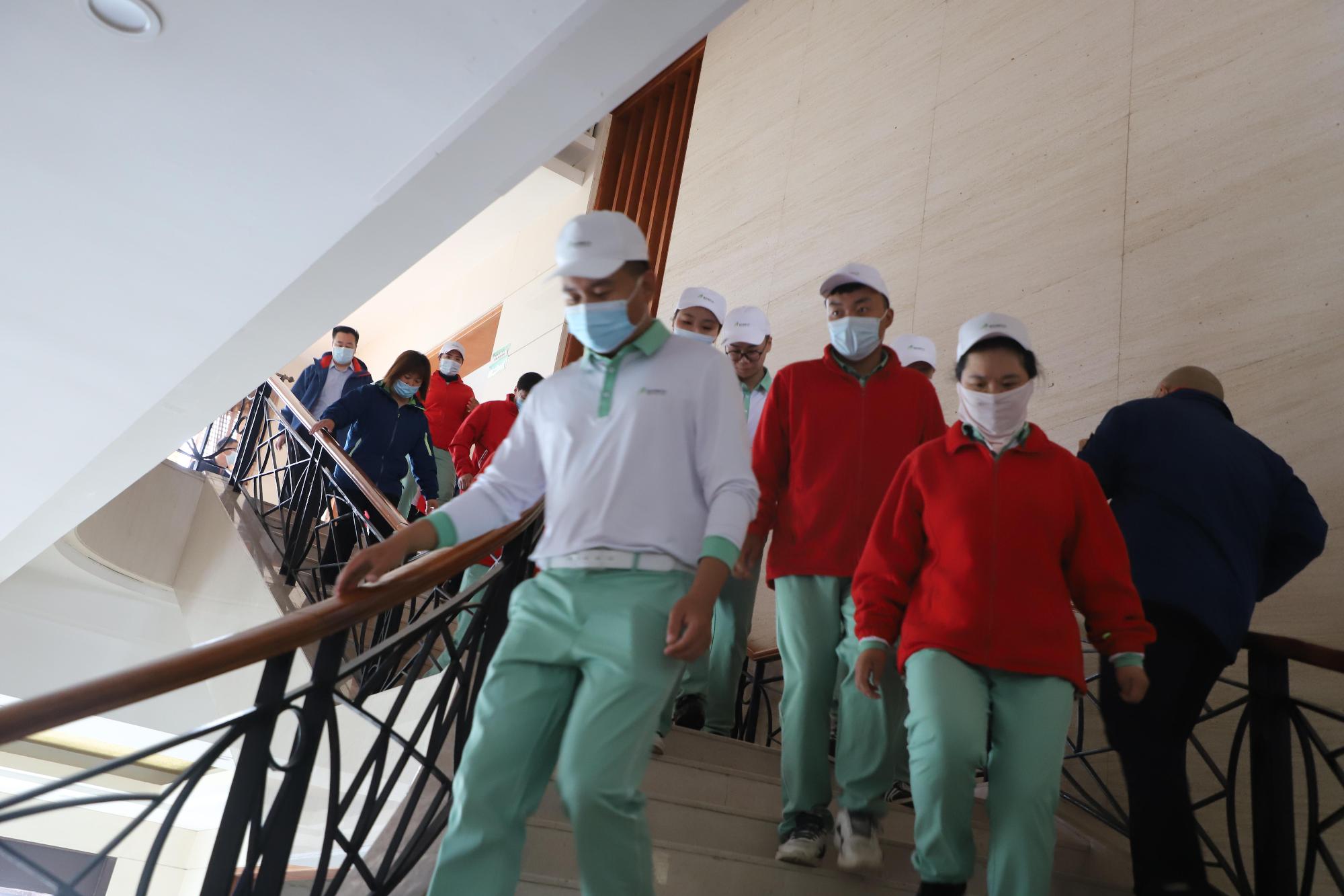 上午9點30分,急促的警鈴聲和逃生廣播在崮云湖高爾夫俱樂部大廳響起,公司安全疏散專項小組人員迅速聯(lián)系安保、救援、物資、險情處置各小組工作人員,第一時間啟動應急預案。全體職工在聽到警示后,規(guī)范按照應急流程進行疏散,總體演練緊張有序,模擬險情場所內(nèi)的在崗全體職工均安全撤離。隨后,全體人員集中觀看系列安全警示教育片,鞏固樹立安全防范意識。