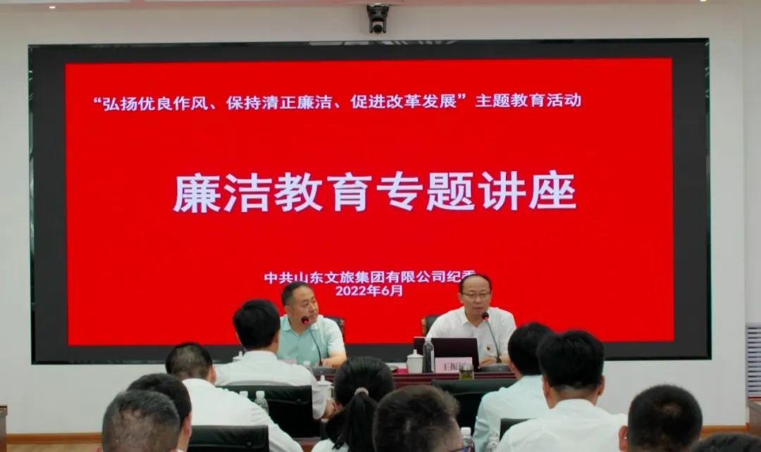 為深入貫徹落實全面從嚴治黨要求,進一步加強清廉文旅建設,教育引導黨員干部筑牢拒腐防變的思想防線,保持清正廉潔的政治本色,6月30日,山東文旅集團紀委組織開展“弘揚優(yōu)良作風、保持清正廉潔、促進改革發(fā)展”廉潔教育專題講座,邀請濱州學院黨委委員、紀委書記、監(jiān)察專員李繼峰作專題輔導。集團黨委委員、紀委書記王振江主持會議并講話。