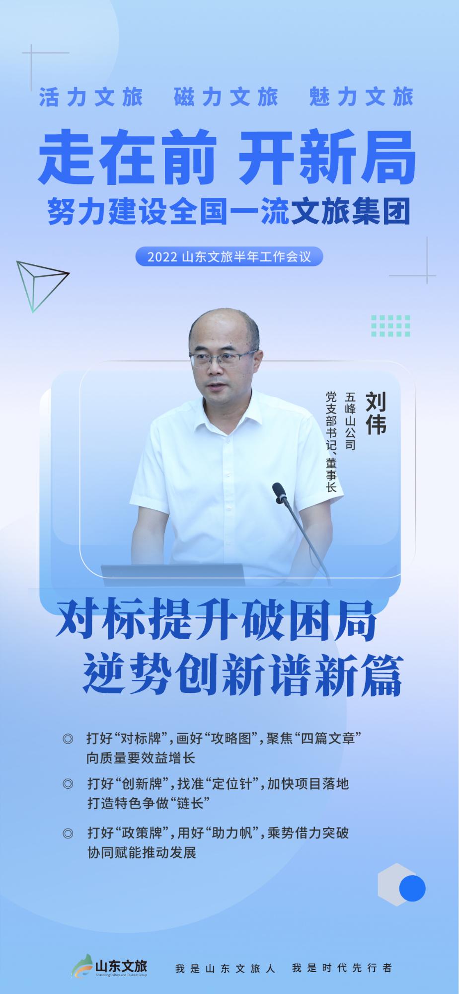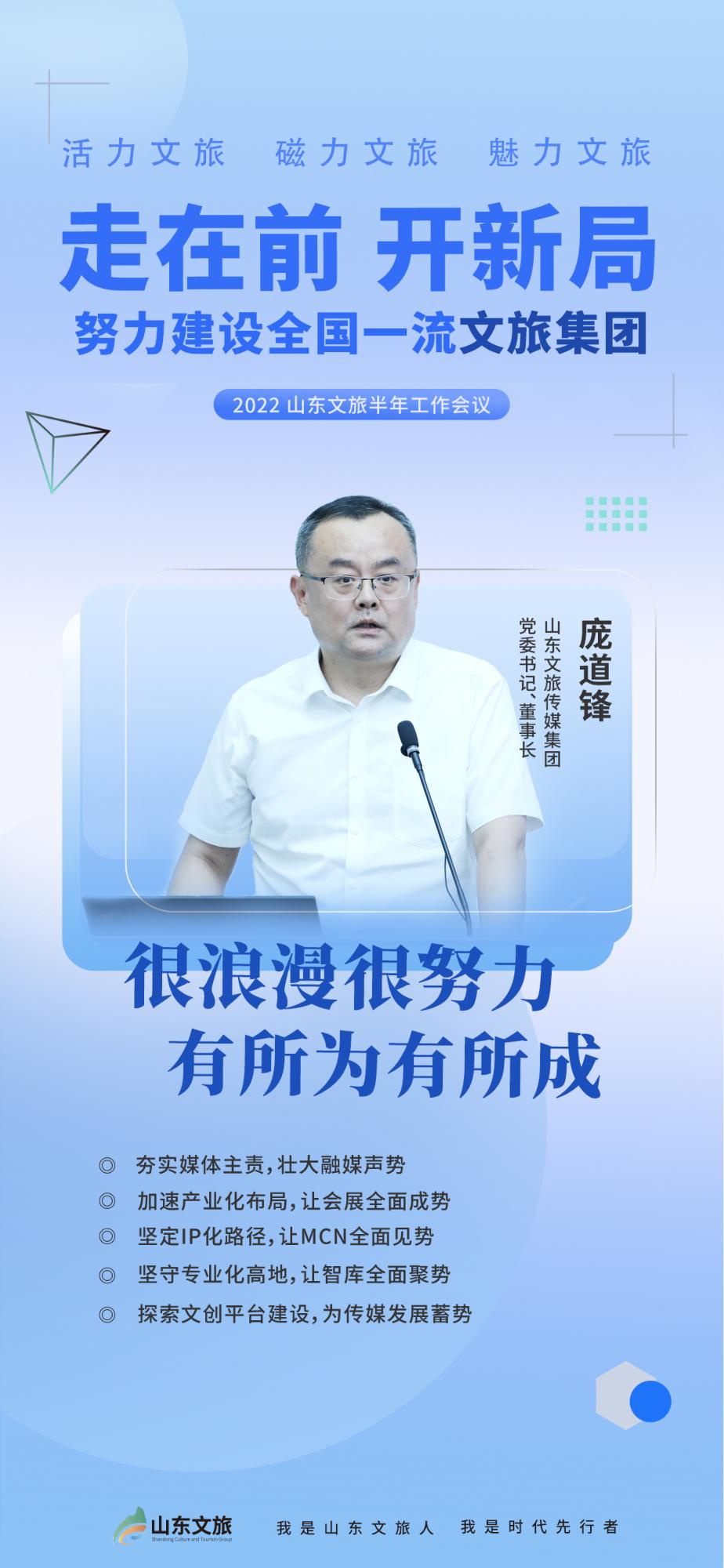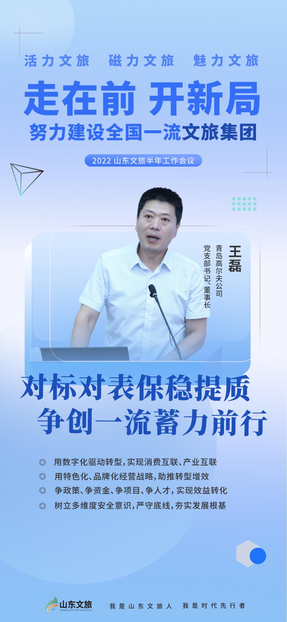 在山東文旅半年經(jīng)濟(jì)工作分析會(huì)上,集團(tuán)黨委書(shū)記、董事長(zhǎng)高洪雷對(duì)集團(tuán)2022年下半年工作進(jìn)行重點(diǎn)部署,要深入學(xué)習(xí)貫徹黨的二十大精神,堅(jiān)持以習(xí)近平總書(shū)記“三個(gè)走在前”的重要指示為根本遵循,以建設(shè)現(xiàn)代化經(jīng)濟(jì)文化強(qiáng)省為己任,以“對(duì)標(biāo)提升年”為抓手,按照“54331”的工作思路,實(shí)施平臺(tái)化、智能化、精品化、生態(tài)化、國(guó)際化“五大戰(zhàn)略”,做好鄉(xiāng)村振興、黃河戰(zhàn)略、海洋強(qiáng)省、山東手造“四篇文章”,實(shí)現(xiàn)由塊到鏈、由投資到投智、由競(jìng)爭(zhēng)到協(xié)同“三個(gè)轉(zhuǎn)變”,形成活力文旅、磁力文旅、魅力文旅“三力文旅”,全力打造具有“世界眼光、國(guó)際標(biāo)準(zhǔn)、全國(guó)一流、山東特色”的文旅集團(tuán)。