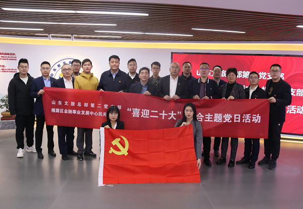 10月10日,山東文旅總部第二黨支部與槐蔭區(qū)金融事業(yè)發(fā)展中心機關(guān)黨支部開展“喜迎二十大”聯(lián)合主題黨日活動。集團黨委委員、副總經(jīng)理孫超,槐蔭區(qū)金融事業(yè)發(fā)展中心負責人陳軍參加活動。