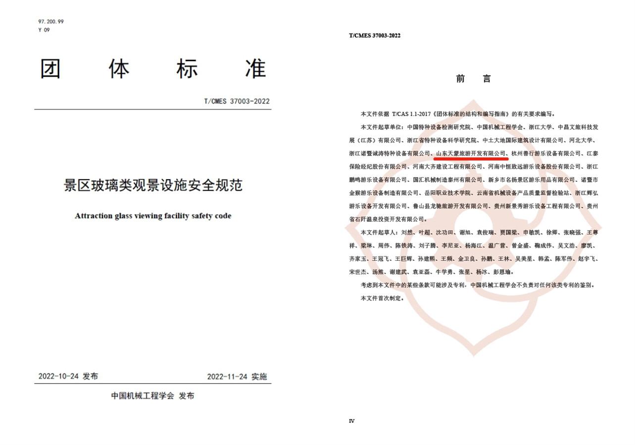 近日,山東文旅集團旗下天蒙景區(qū)作為核心起草者制定的團體標(biāo)準(zhǔn)T/CMES 37003-2022《景區(qū)玻璃類觀景設(shè)施安全規(guī)范》正式發(fā)布,這是我國首項涵蓋各類玻璃類觀景設(shè)施的安全標(biāo)準(zhǔn)。