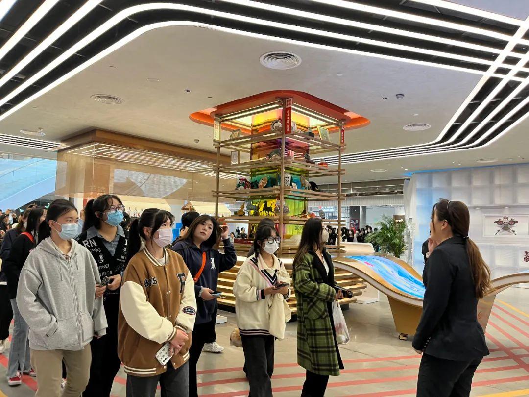 乘坐電梯來(lái)到二層,同學(xué)們走入“山東往昔”,16市手造窗口店落位于此,呈現(xiàn)了16市不同風(fēng)格、各具特色的手造精品和手造文化。淄博的多彩琉璃、德州的精致黑陶、濟(jì)寧的孔子文創(chuàng)、菏澤的國(guó)風(fēng)漢服……同學(xué)們?cè)谧约杭亦l(xiāng)的手造窗口店流連忘返,也找到了心底的家鄉(xiāng)情懷。