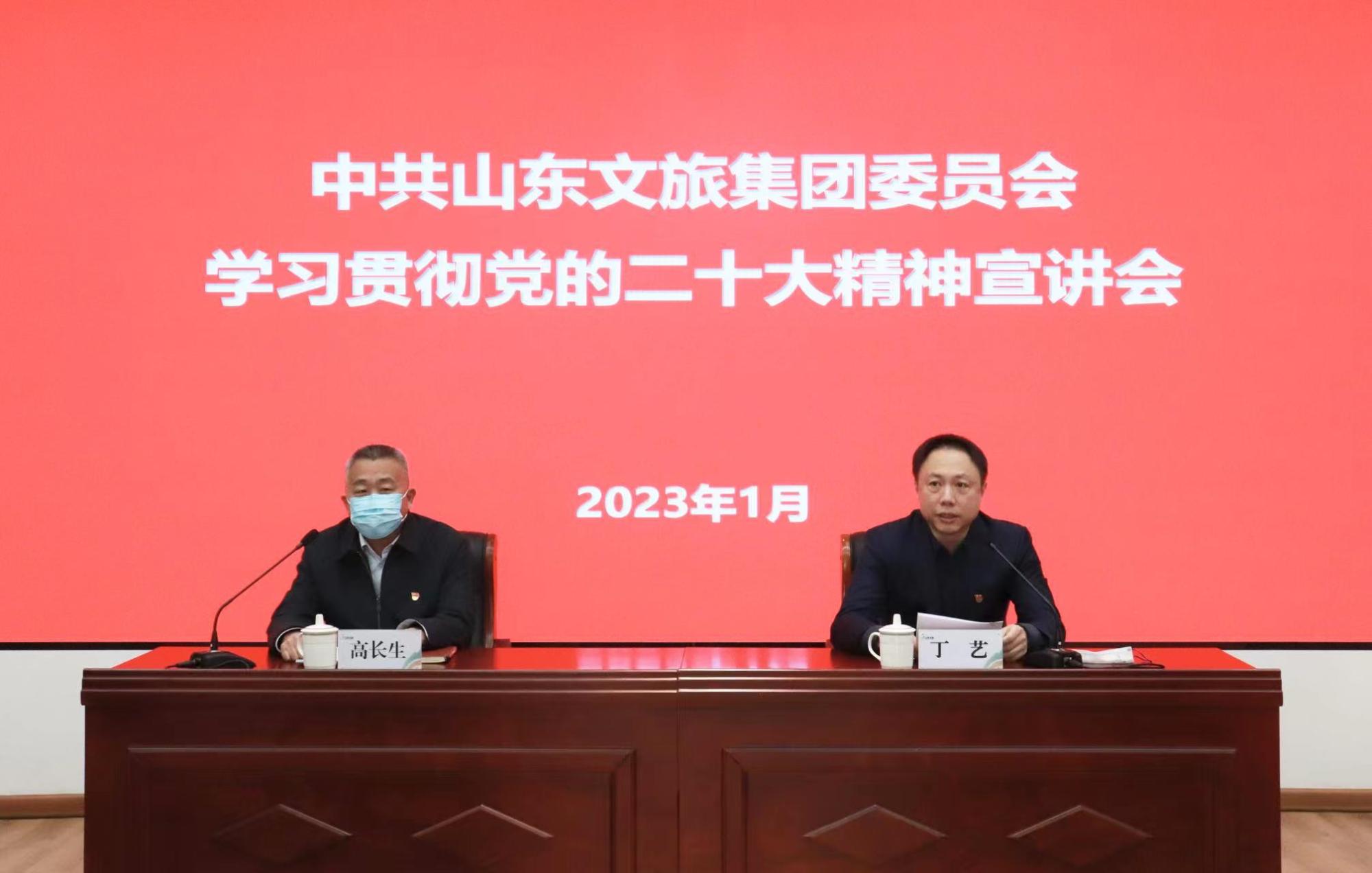 1月18日,山東文旅集團(tuán)舉行黨的二十大精神宣講會,省國資委黨委委員、副主任高長生到會宣講,集團(tuán)黨委書記、董事長高洪雷出席會議,黨委副書記、總經(jīng)理丁藝主持會議。