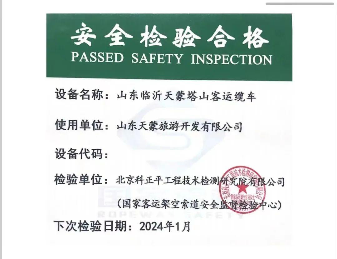 專家組一致認為天蒙山觀光纜車設(shè)備運轉(zhuǎn)狀況正常,安全管理制度健全、設(shè)備管理規(guī)范、資料充足完整,各項技術(shù)指標及管理規(guī)范符合國家安全運行標準和《客運地面纜車技術(shù)規(guī)范》的要求,認定天蒙山觀光纜車檢驗合格。這標志著天蒙山觀光纜車已具備安全運營能力,可正式對外營業(yè),承擔運送游客上下山游覽景區(qū)的任務(wù)。