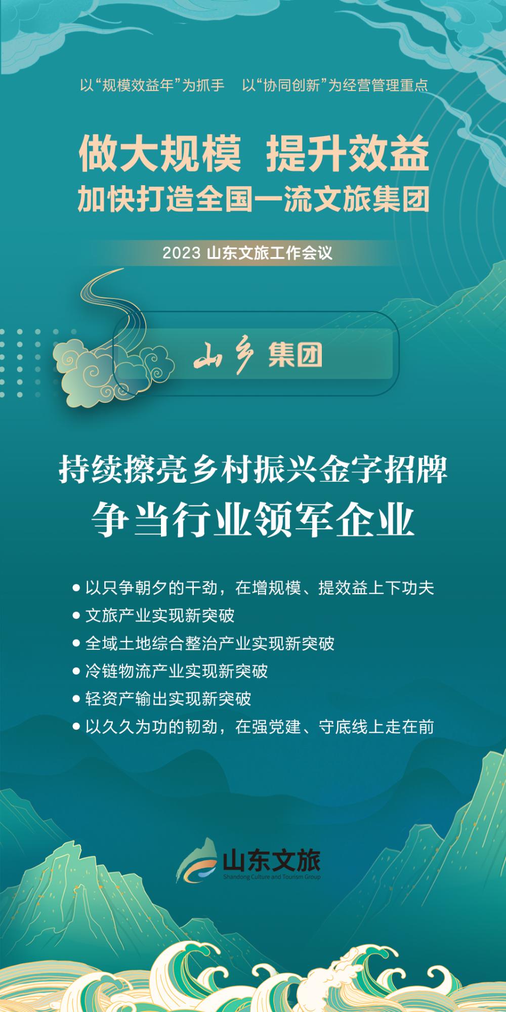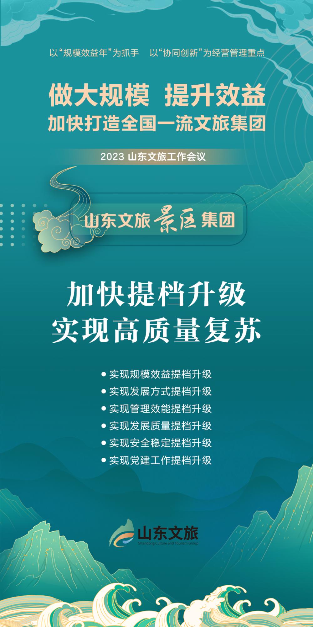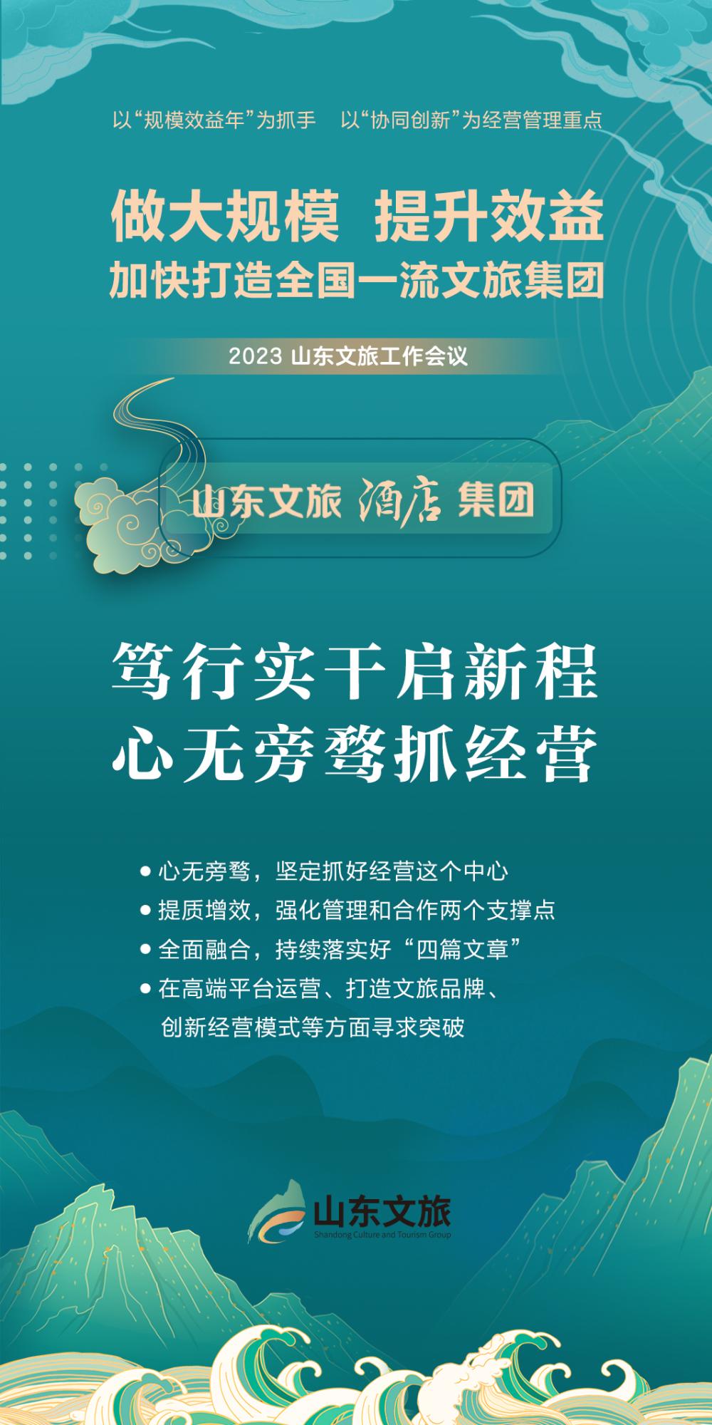 編者按:今年是貫徹落實(shí)黨的二十大精神的開局之年,也是實(shí)施“十四五”規(guī)劃承上啟下之年。新的一年,要堅(jiān)持以習(xí)近平新時(shí)代中國特色社會(huì)主義思想為指導(dǎo),全面貫徹落實(shí)黨的二十大精神和習(xí)近平總書記對(duì)山東工作的重要指示,在省委省政府的堅(jiān)強(qiáng)領(lǐng)導(dǎo)下,在省國資委等有關(guān)部門的關(guān)心指導(dǎo)下,以建設(shè)現(xiàn)代化經(jīng)濟(jì)文化強(qiáng)省為己任,以建設(shè)綠色低碳高質(zhì)量發(fā)展先行區(qū)為切入點(diǎn),以“規(guī)模效益年”為抓手,以“協(xié)同創(chuàng)新”為經(jīng)營(yíng)管理重點(diǎn),為新時(shí)代社會(huì)主義現(xiàn)代化強(qiáng)省建設(shè)貢獻(xiàn)山東文旅力量。為此,特開設(shè)“做大規(guī)模 提升效益”專刊,刊登貫徹落實(shí)集團(tuán)2023年度工作會(huì)議精神相關(guān)信息,以供學(xué)習(xí)交流。
