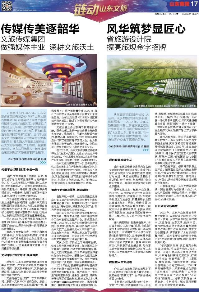 對(duì)剛剛過去的2022年,山東文旅傳媒集團(tuán)有限公司(簡(jiǎn)稱“山東文旅傳媒集團(tuán)”)在內(nèi)部會(huì)議上用8個(gè)字進(jìn)行概括和總結(jié):“數(shù)據(jù)扎實(shí),步履堅(jiān)實(shí)?!睍r(shí)間退回幾年前,彼時(shí)提起傳媒轉(zhuǎn)型說的“始于紙,但不止于紙”,更多的是沿著媒體的方向做“加法”。近幾年,山東文旅傳媒集團(tuán)在守住傳媒行業(yè)大本營(yíng)的同時(shí),著力融入所在的文旅行業(yè),在大文化領(lǐng)域進(jìn)行產(chǎn)業(yè)布局,釋放乘數(shù)效應(yīng),努力與兄弟單位一起支撐起山東文旅集團(tuán)“文旅并重”的產(chǎn)業(yè)格局。
