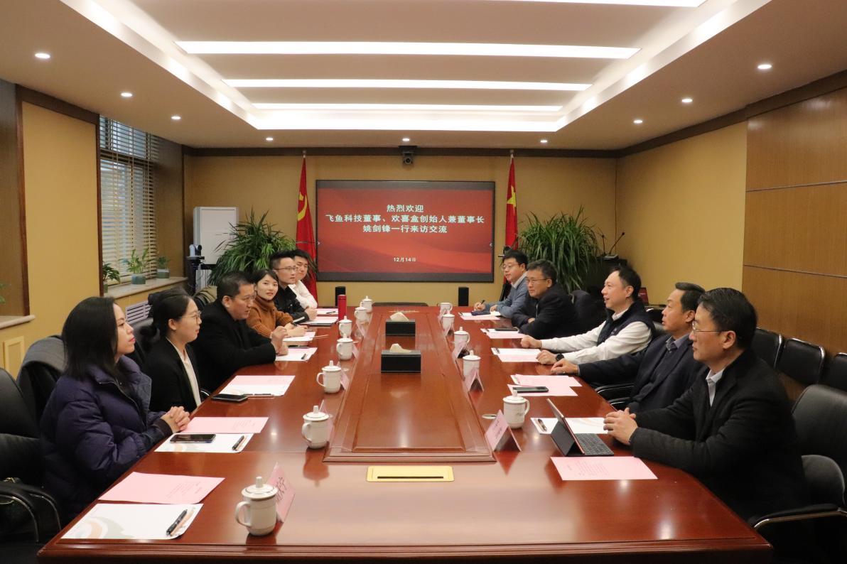 12月14日,飛魚科技董事、廈門歡喜盒文化傳播有限公司(簡稱“歡喜盒公司”)創(chuàng)始人兼董事長姚劍鋒一行到訪山東文旅集團,集團黨委書記、董事長丁藝會見。