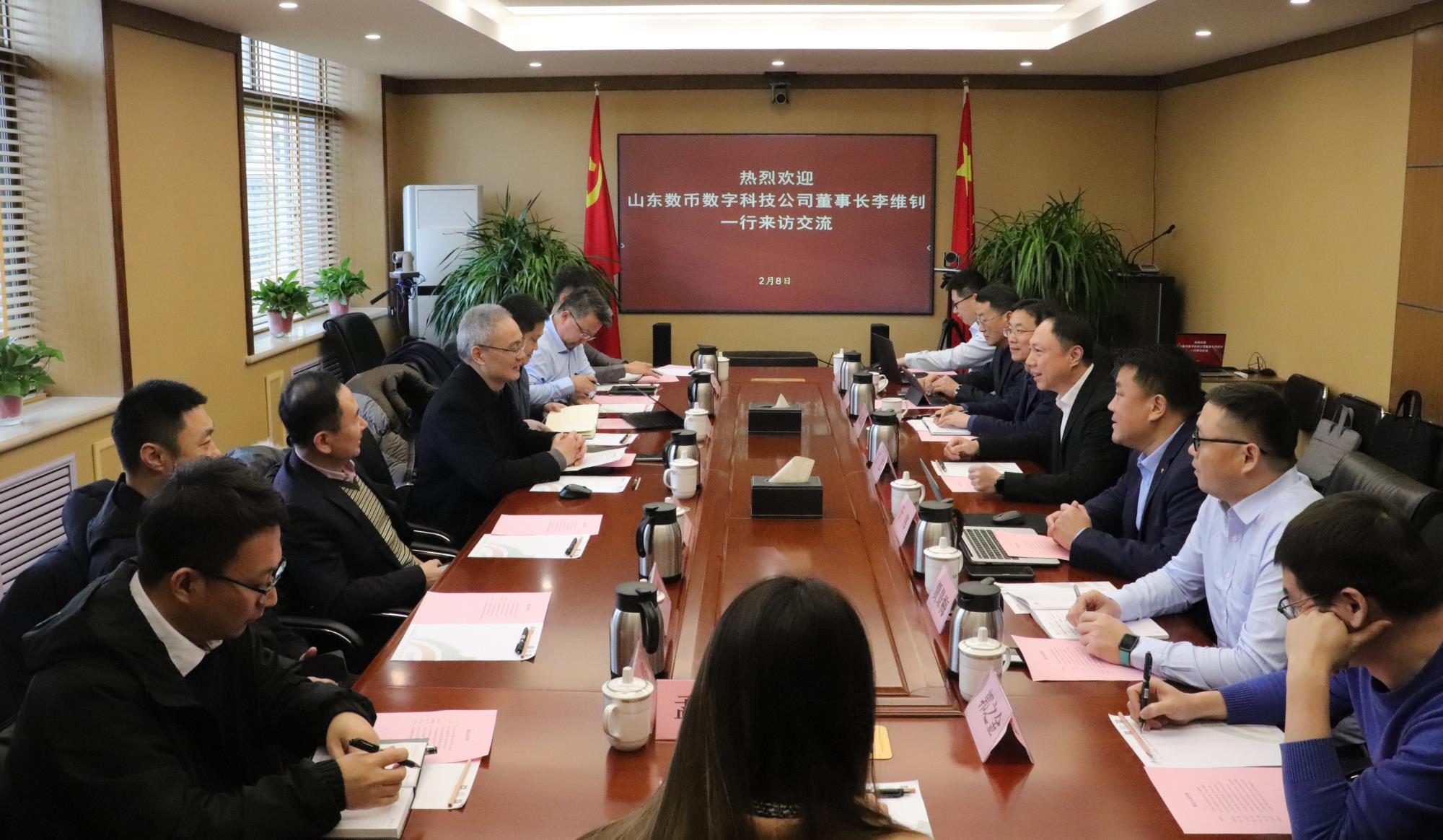 2月8日,山東數(shù)幣數(shù)字科技有限公司董事長(zhǎng)、北京千眼順風(fēng)科技有限公司執(zhí)行董事李維釗率隊(duì)到訪山東文旅集團(tuán),集團(tuán)黨委書(shū)記、董事長(zhǎng)丁藝會(huì)見(jiàn)。