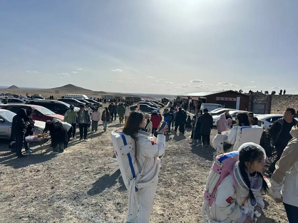 內(nèi)蒙古烏蘭察布草原火山景區(qū)未開先火,假期期間推出了火山尋寶、宇航員體驗等活動,游客可身著宇航服,漫步火山口,親身體驗大自然的鬼斧神工,假期期間累計接待游客近2萬余人次。