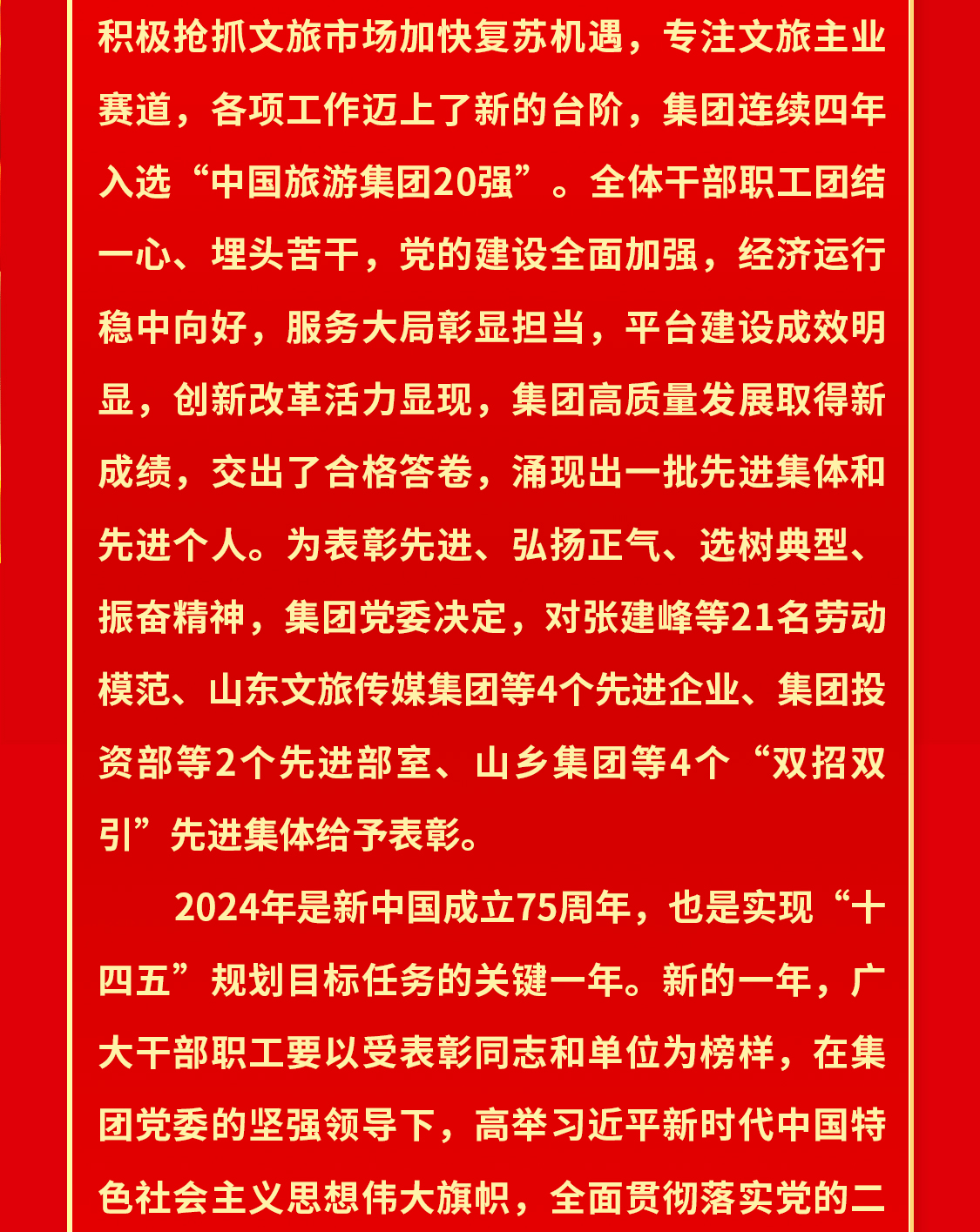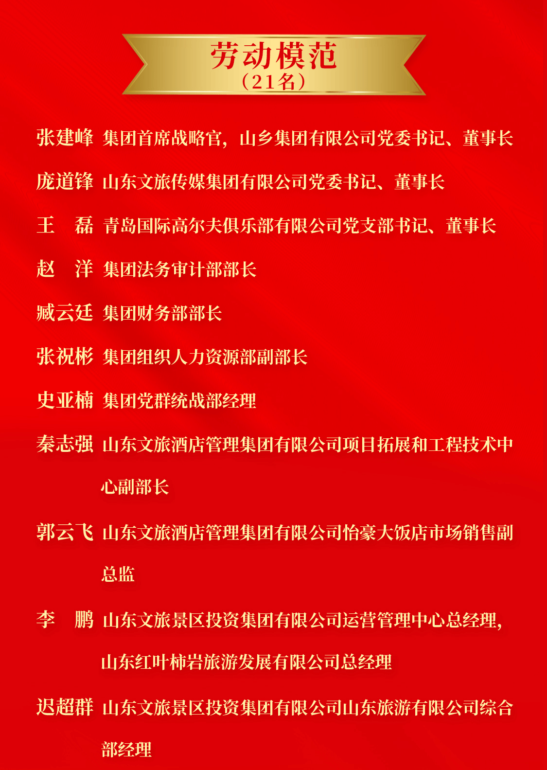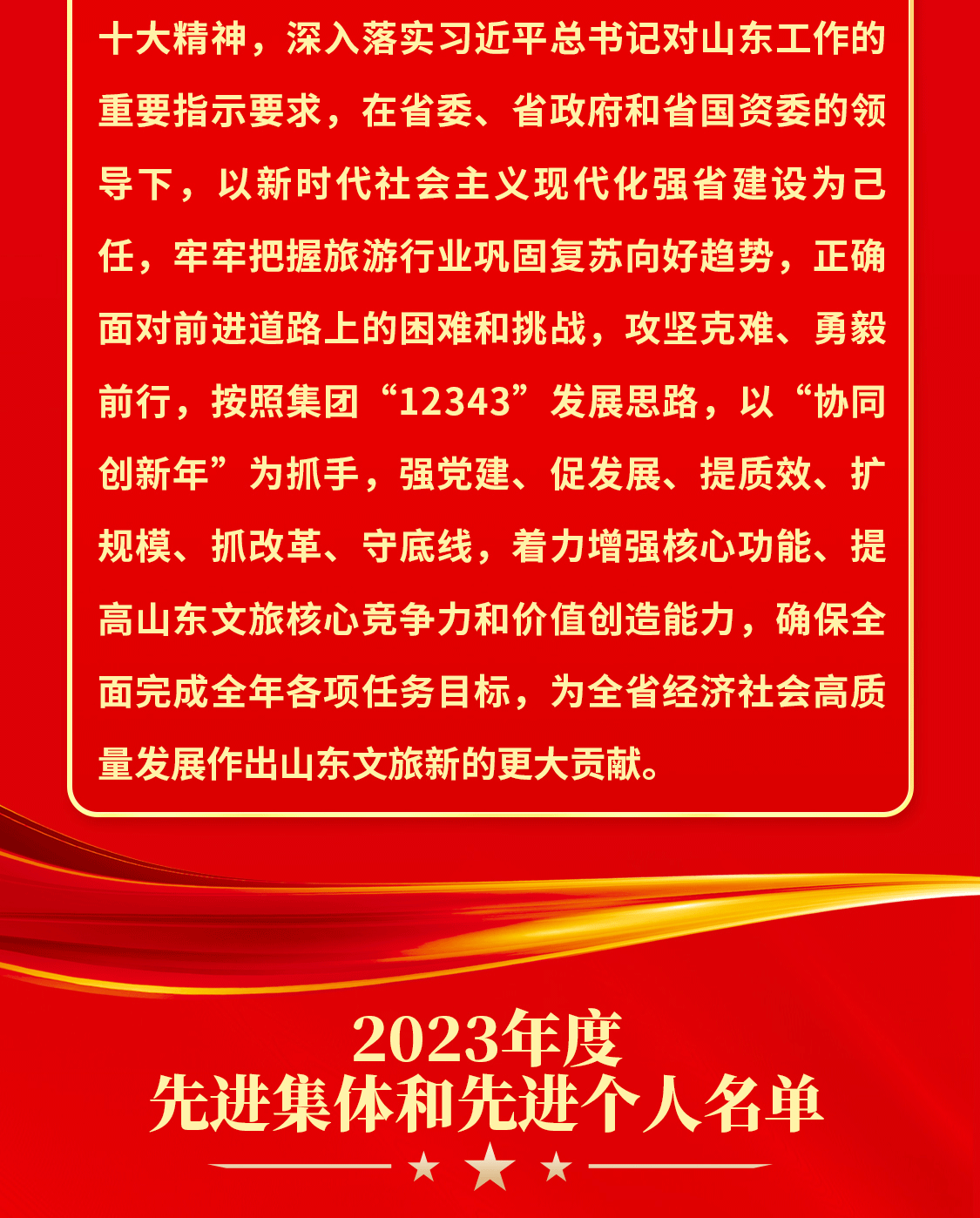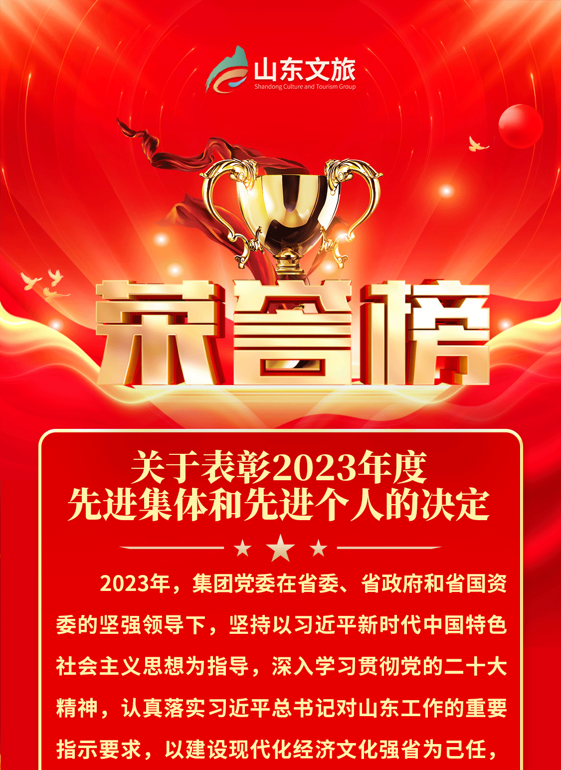 山東文旅集團(tuán)2023年度先進(jìn)集體和先進(jìn)個(gè)人榮譽(yù)榜揭曉